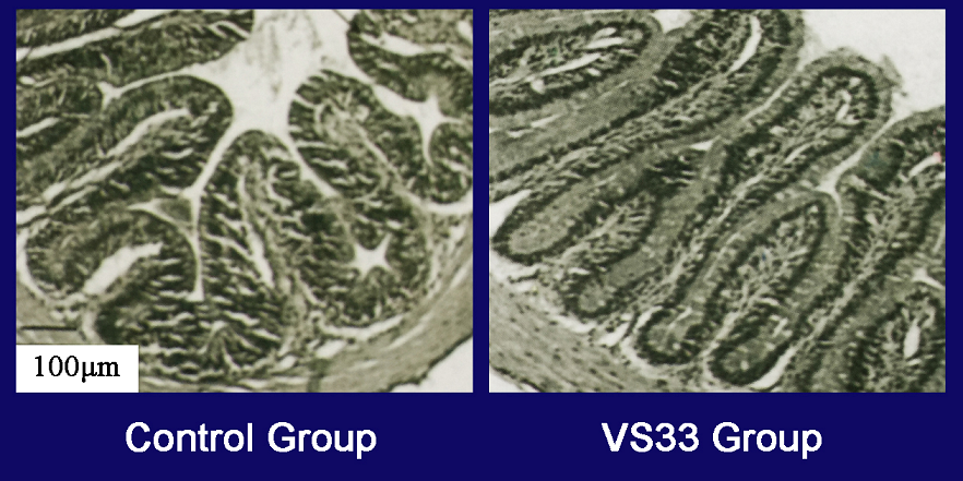 Comparison of villi structure of small intestine between control and VS33 group
