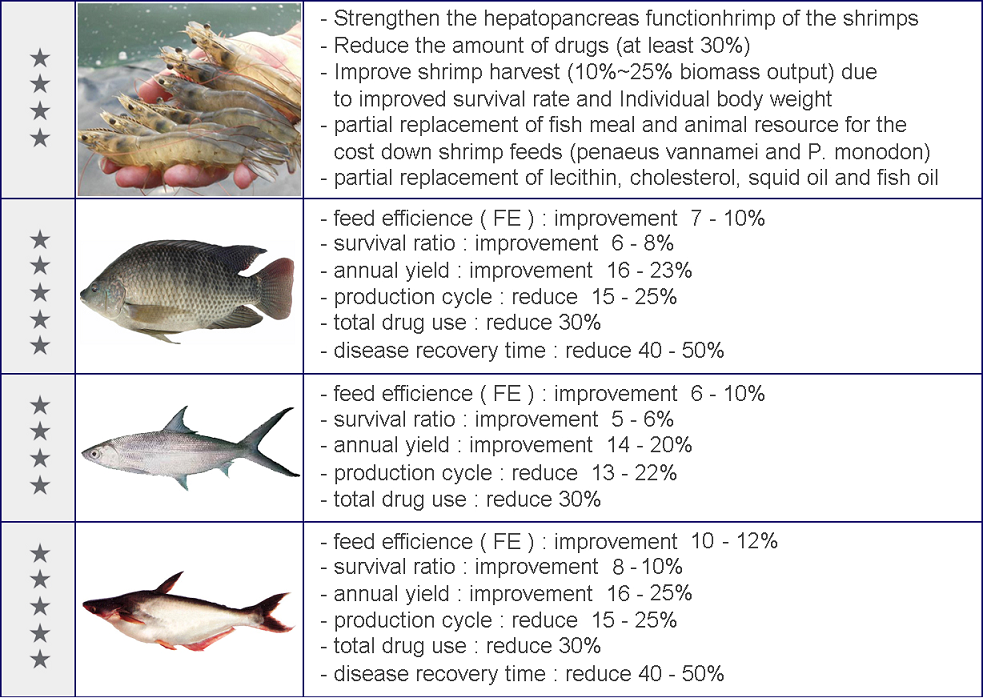 - Improve the feed digestion & specialty nutrition → Better FCR, Faster Growth